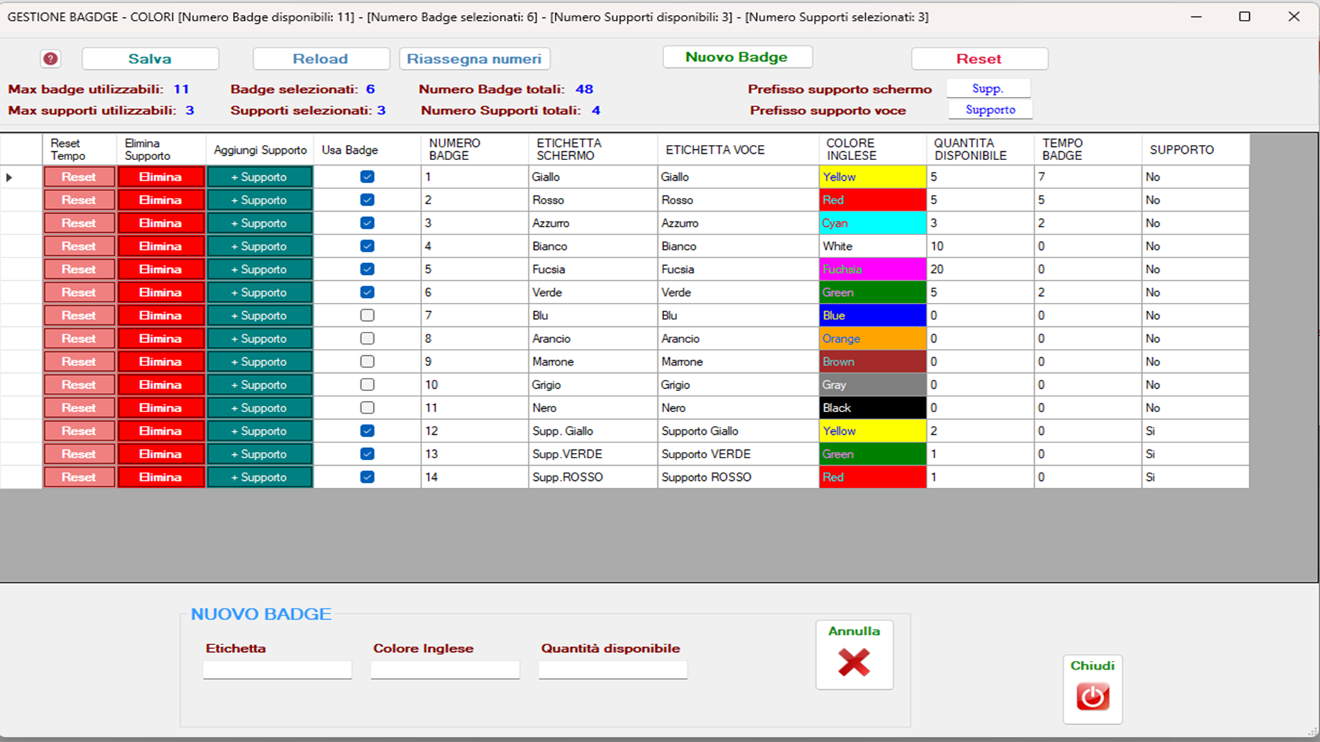 Possibilità di Gestione dei Badge a Colori o con i Numeri. Nel caso di gestione con i Badge Colorati si può gestire l'ingresso a Gruppi di persone.